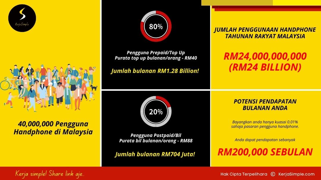 Mana tidaknya, rakyat Malaysia ada 30 juta tetapi pengguna handphone yang aktif ada 40 juta (ada orang guna 2-3 handphone dalam satu masa).