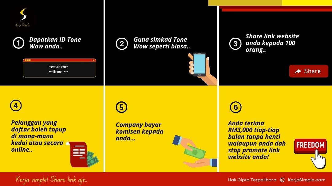Bila customer awak daftar, maka mereka akan dapat simkad Tone Wow dan Link website KerjaSimple juga.