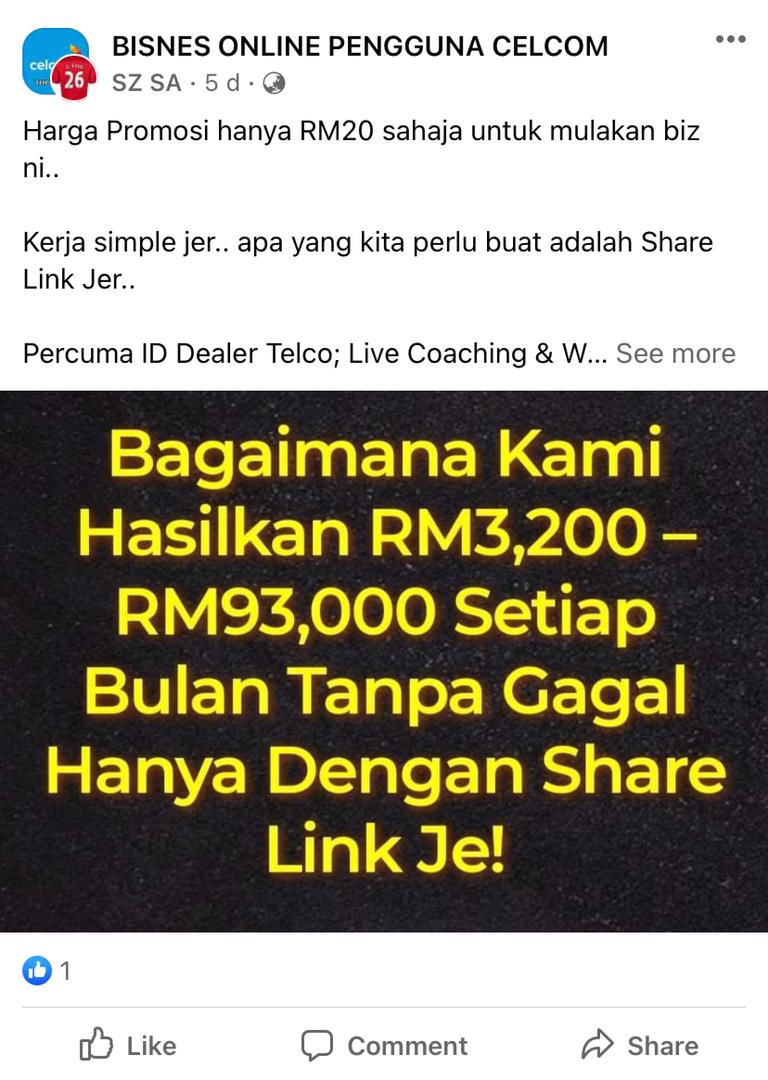 Lepas tu, kerja awak hanya SHARE LINK je!